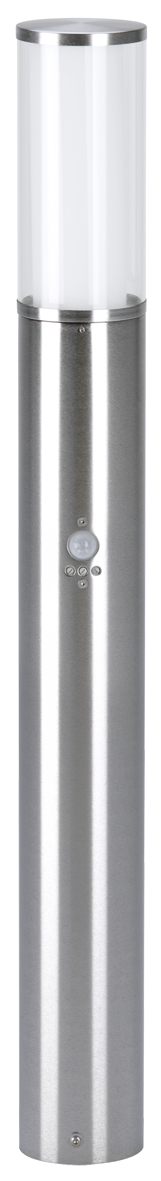 Albert-Pollerleuchte 692071 - mit integriertem Bewegungsmelder - aus Edelstahl mit opales Glas und Acrylglaszylinder klar. Eingerichtet für 1 x TC-DSE max. 18W, Fassung E27. Anschlussfertig mit Montageplatte zum Aufschrauben auf ein Fundament oder auf den Erdeinbausockel Nr. 690010. Schutzart IP 44 - Schutzklasse I Abmessungen: ø 100 x 900 mm