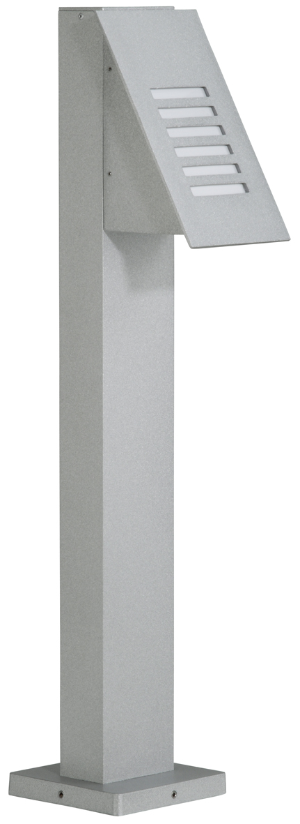 Albert-Pollerleuchte 692072 aus korrosionsbeständigem Aluminiumguß mit opales Glas. Eingerichtet für 1 x Halogenglühlampe QT 18 75W, Fassung B15d. Anschlussfertig zum Aufschrauben auf ein Fundament oder auf den Erdeinbausockel Nr. 690010. Farbe: silber Schutzart IP 44 - Schutzklasse I Abmessungen: 150 x 150, 140 x 240 x 770 mm