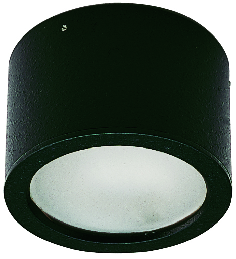 Albert-Deckenaufbaustrahler 662382 aus Aluminiumguß mit Montageplatte, satiniertem Borosilikatglas. 1 x LED 10 w, warmweiß 3000 K, 770 lm Farbe: schwarz Schutzart IP 44 - Schutzklasse I Abmessungen: ø 110 x 74 mm