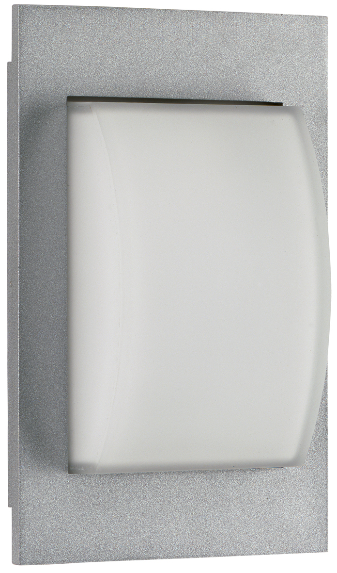 Albert-Wandleuchte 696208 aus korrosionsbeständigem Aluminiumguß mit opales Glas. Eingerichtet für 1 Glühlampe A60 75W, Fassung E27. Farbe: silber Schutzart IP 44 - Schutzklasse I Abmessungen: 200 x 300 x 90 mm