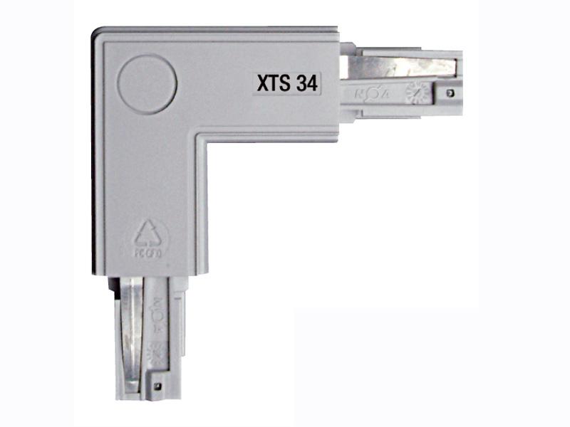 Eckverbinder für XTS-Stromschiene grau, Schutzleiter aussen
