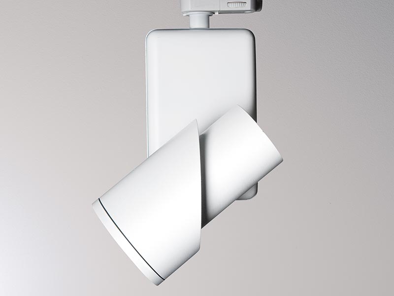 weiß Feinstruktur pulverbeschichtet, Vakuumbedampfter Aluminiumreflektor 15° Ausstrahlwinkel, Strahler 350° drehbar und Leuchtenkopf 350° schwenkbar, vertikales Gehäuse, PC-Schutzscheibe, aktive Kühlung, 3000K, CRI>80
